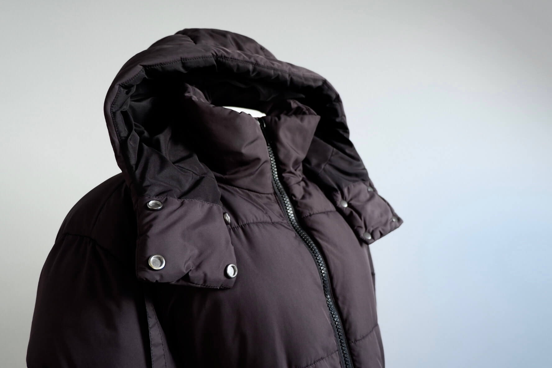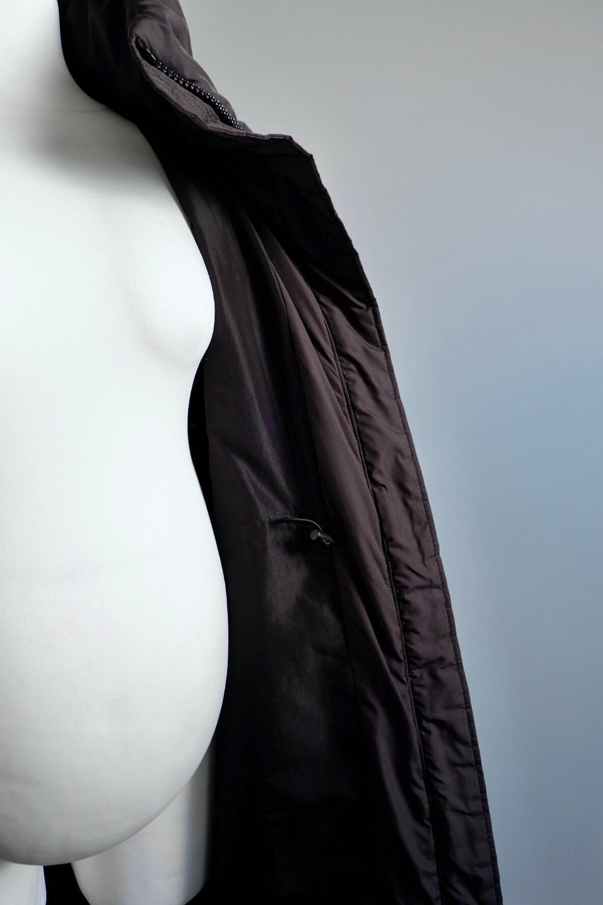 H&M maternity puffer coat in black featuring a centre zip, inner drawstring for an adjustable fit, and a hood with collar studs for added detail. Matching studs along the bottom side hem can be opened to provide extra room during pregnancy. Designed to be worn comfortably both during maternity and beyond.