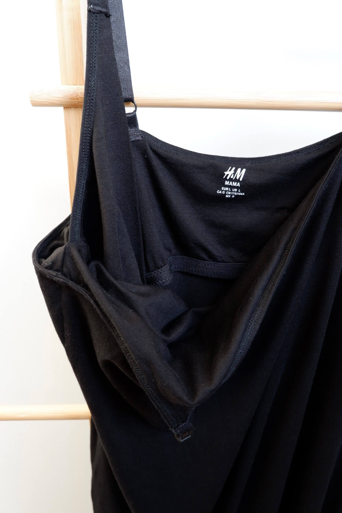H&M black nursing dress with double layer and strap clips for breastfeeding access.